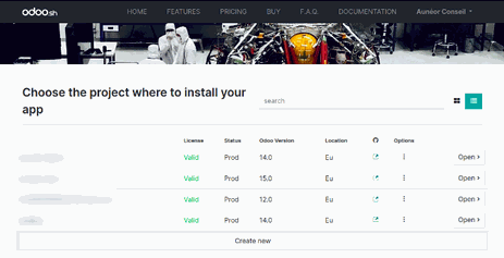 Si vous êtes bien connecté à votre compte Odoo.com, vous devez voir un bouton vert "Deploy on Odoo.sh".