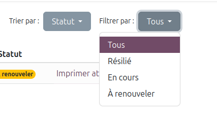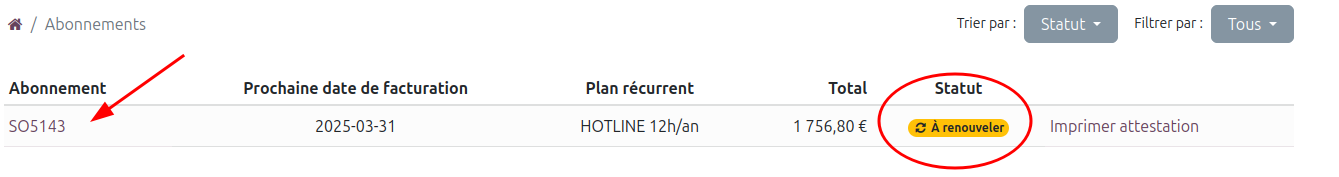 - Utilisez les filtres pour identifier les abonnements en attente de renouvellement.