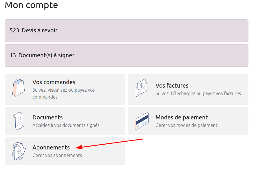 - Accédez à Mes abonnements via votre espace client Aunéor Conseil
