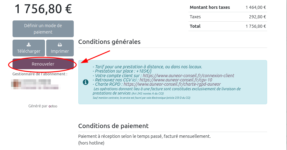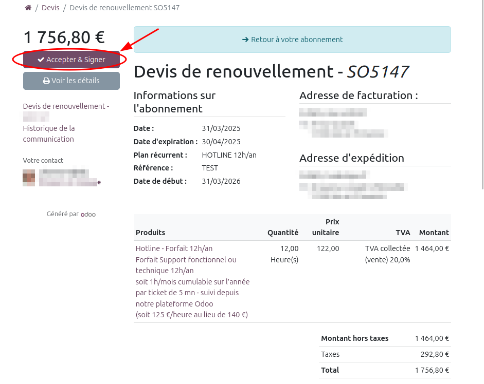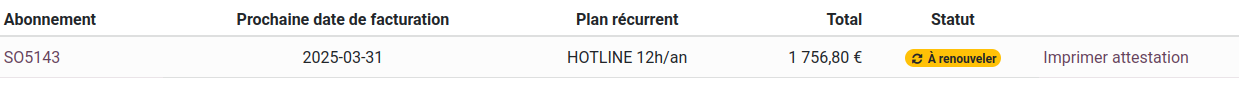 Avec cette configuration, vous avez la possibilité de renouveler vos abonnements de hotline directement depuis votre espace en ligne, assurant ainsi une continuité de service lorsque vous le souhaitez.