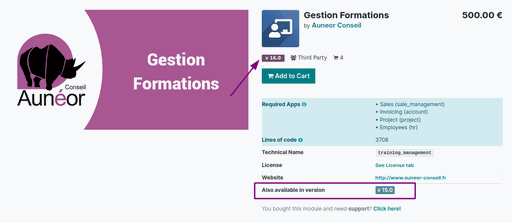 Attention à bien acheter la version du module correspondant à votre version Odoo.